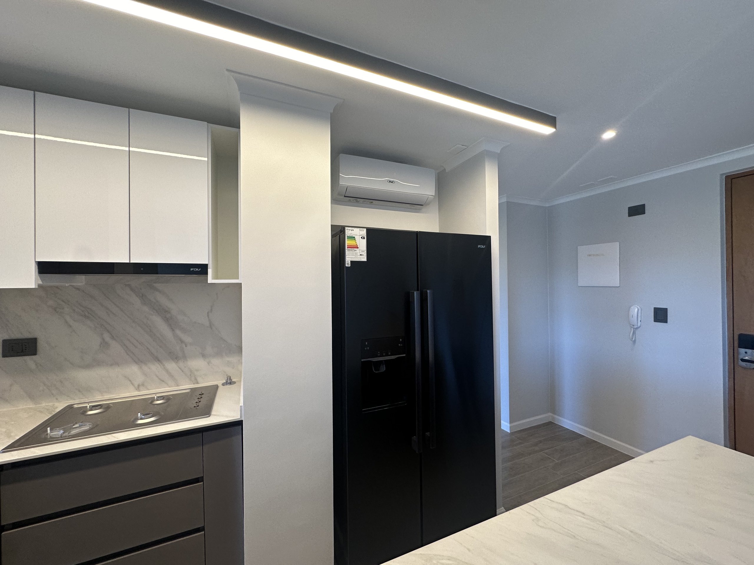 El departamento cuenta con cortinas roler y moderno sistema de iluminación.