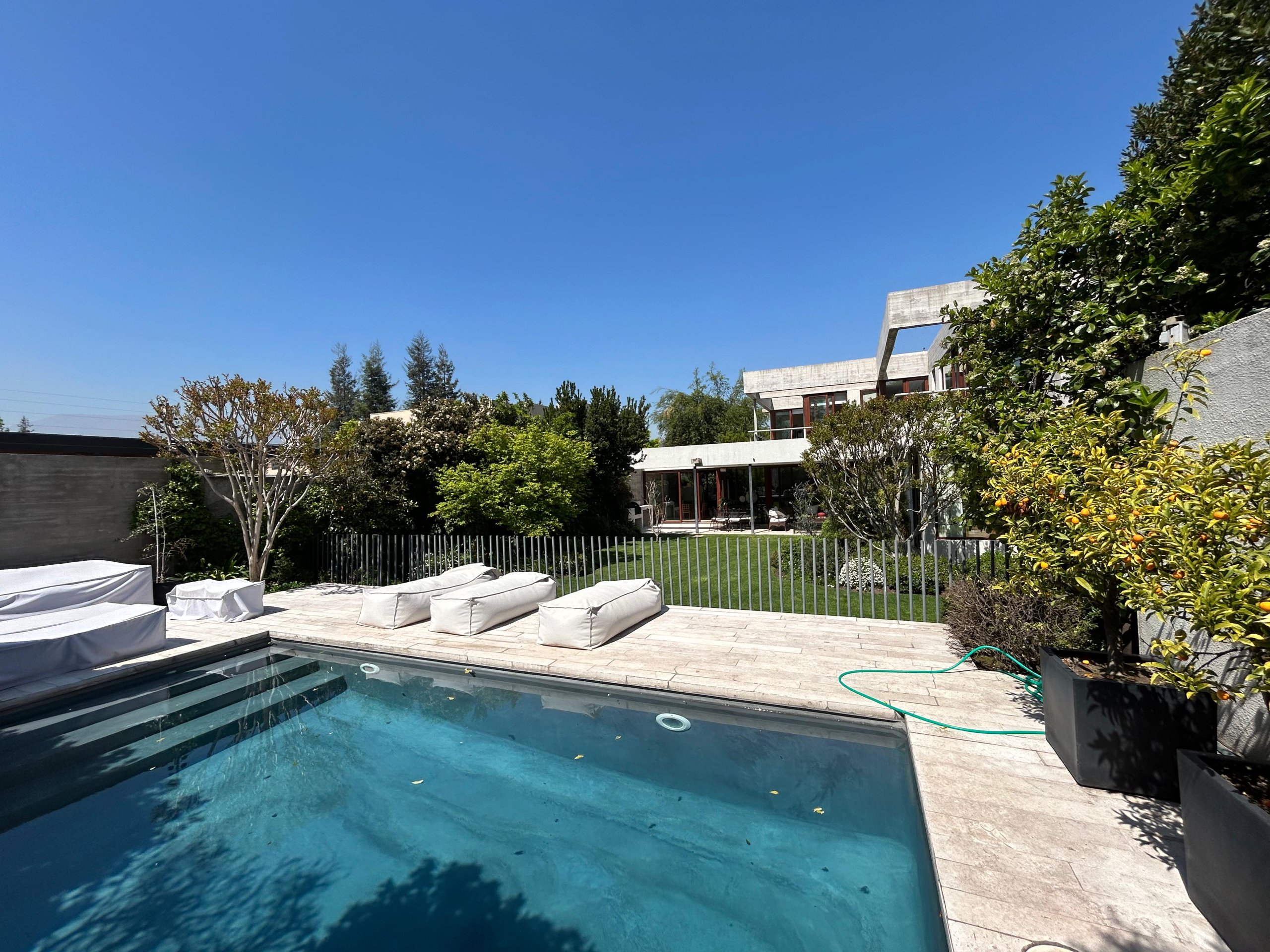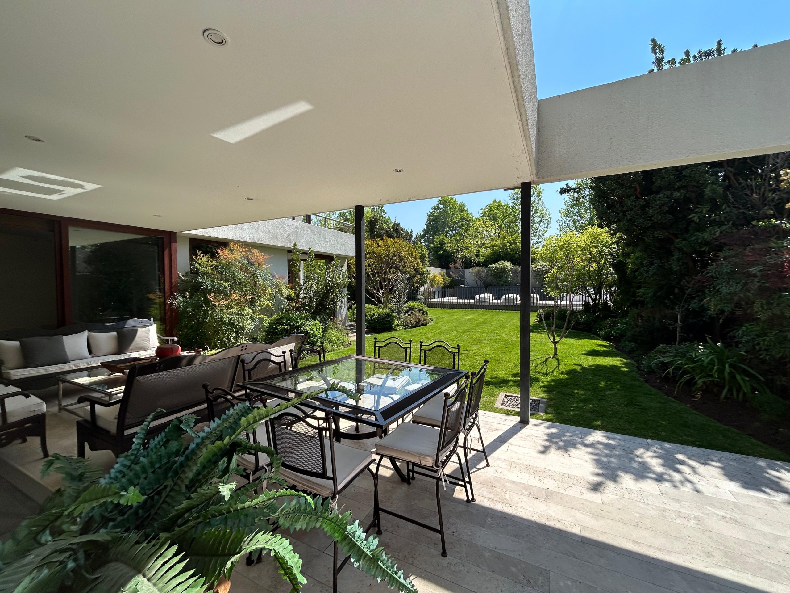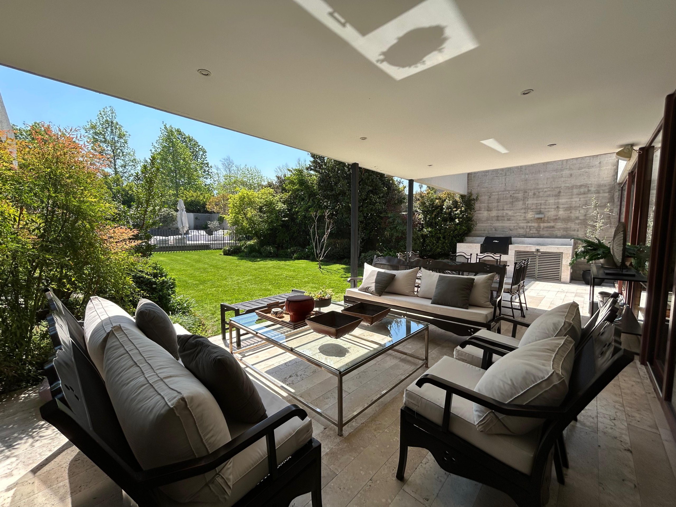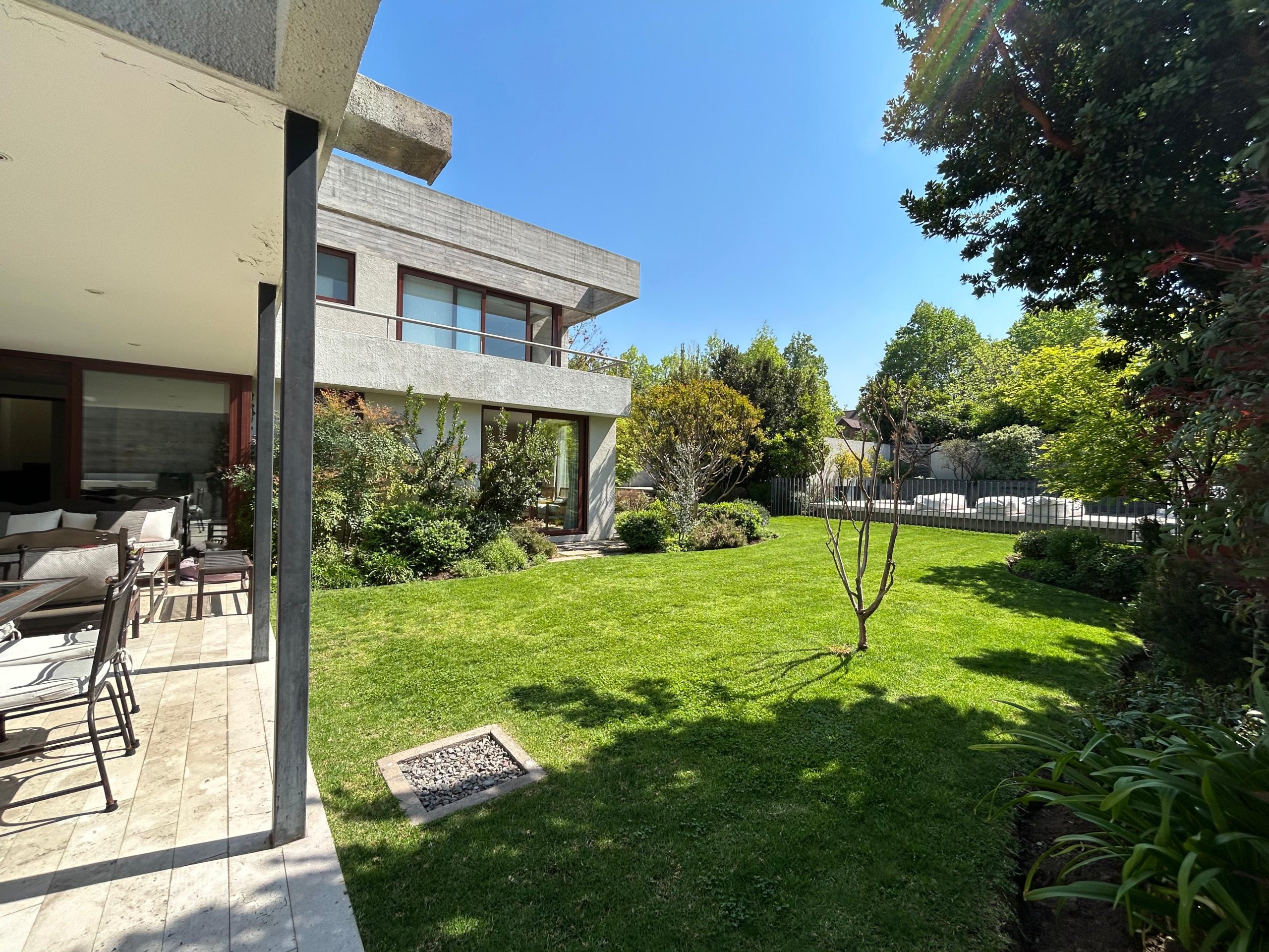 Con un terreno de 840 m² y 325 m² construidos, esta propiedad destaca por su orientación norte, sus espacios amplios y un jardín diseñado por paisajista que integra piscina y sector de quincho.