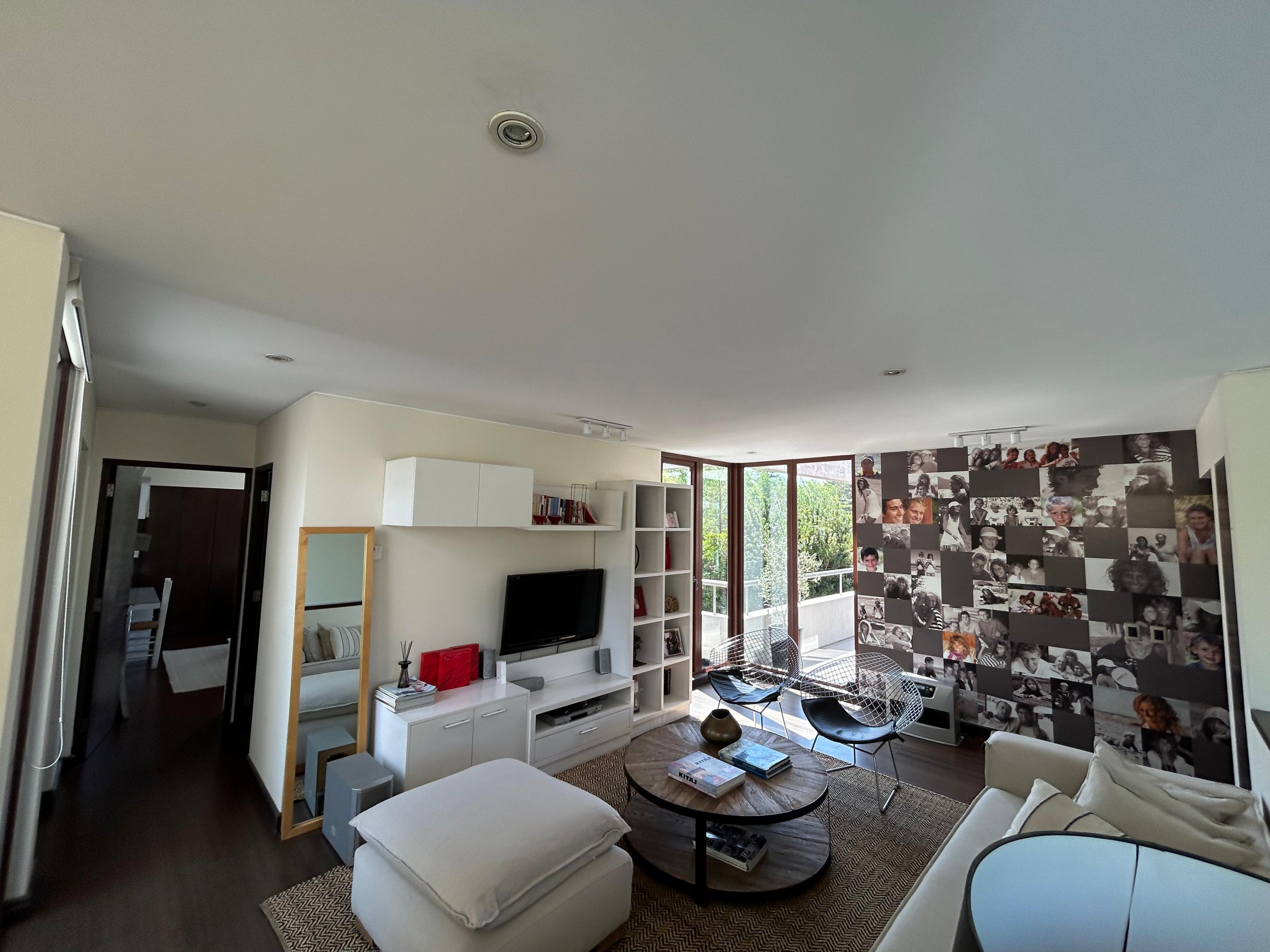 Sala de estar familiar con terraza.