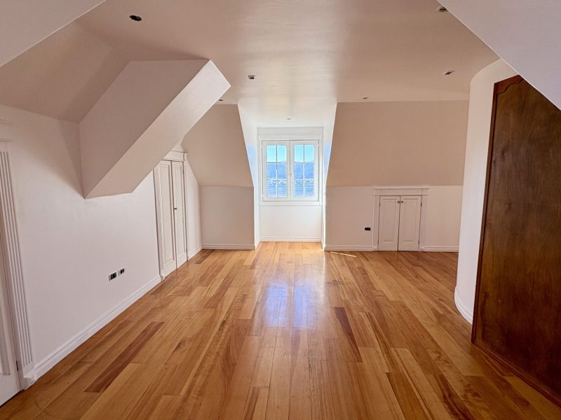 En el tercer nivel, tres mansardas ofrecen múltiples posibilidades: sala de juegos, escritorio, gimnasio o espacios independientes según necesidad.