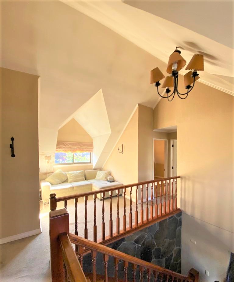 Consta de recibo, cocina amoblada, living -comedor separado con salida a patio; baño visita,  dormitorio y baño en primer piso.  Segundo piso con sala estar y cuatro dormitorio niños y baño niños.