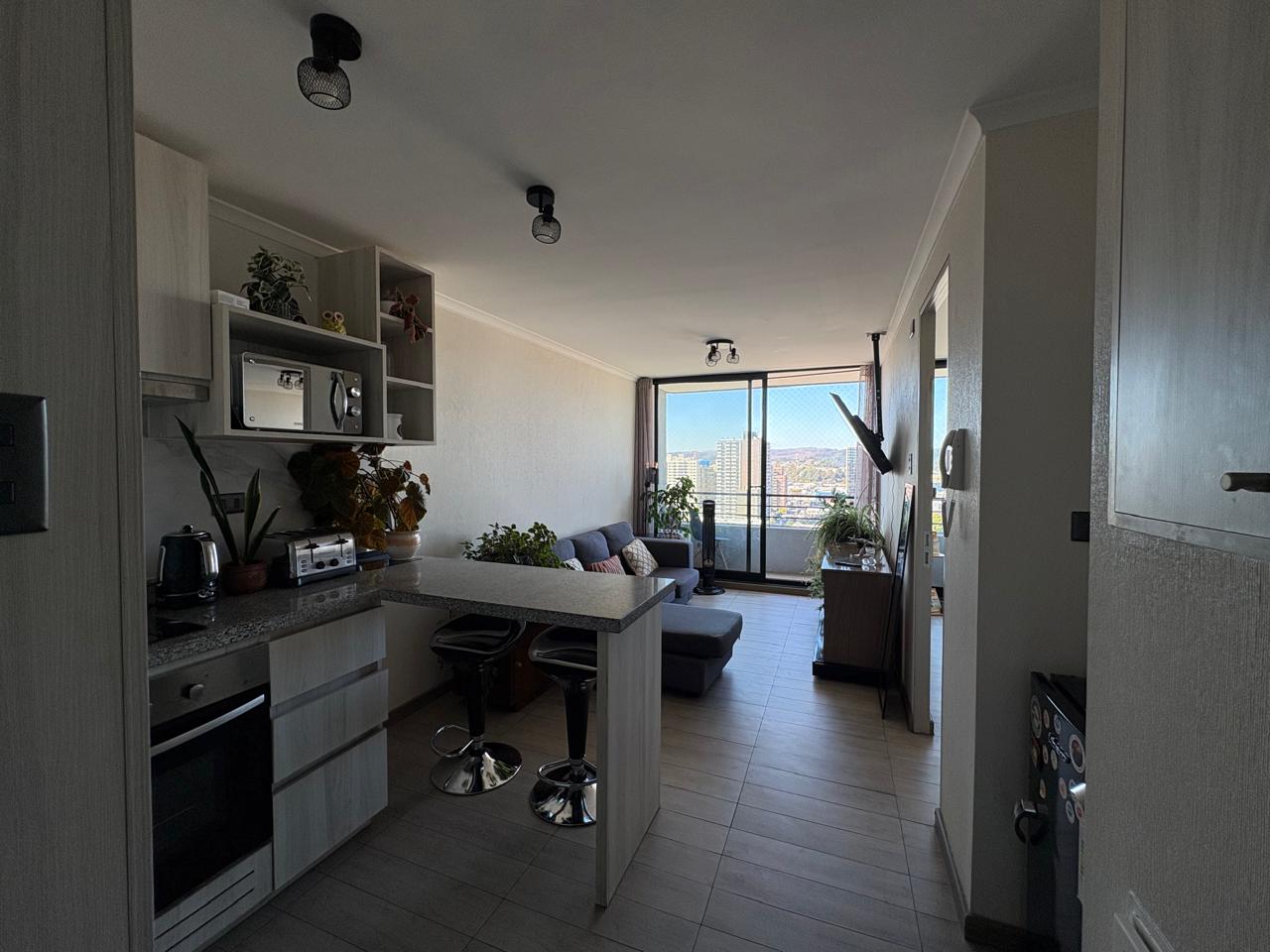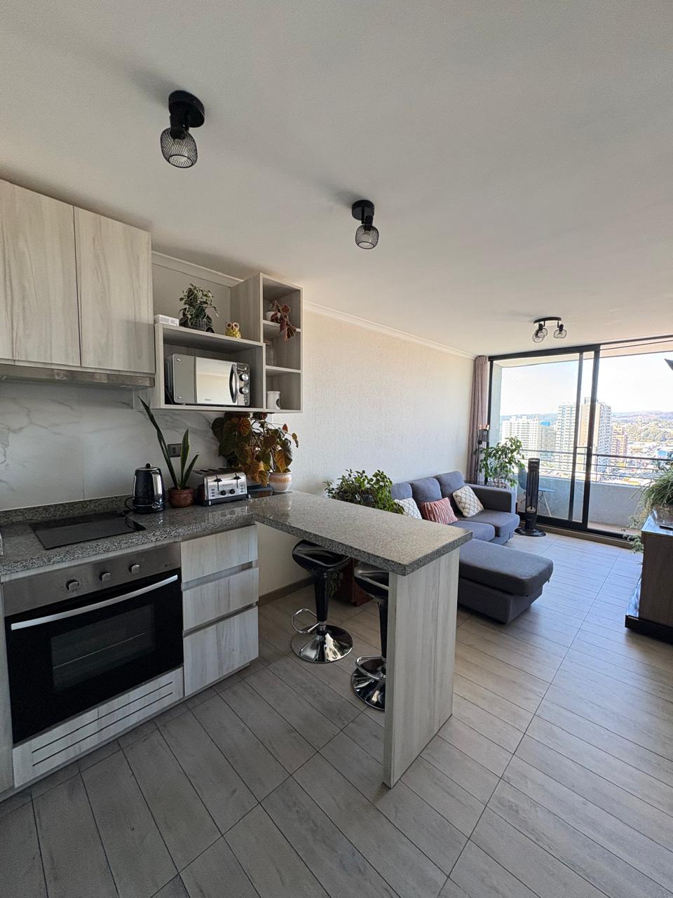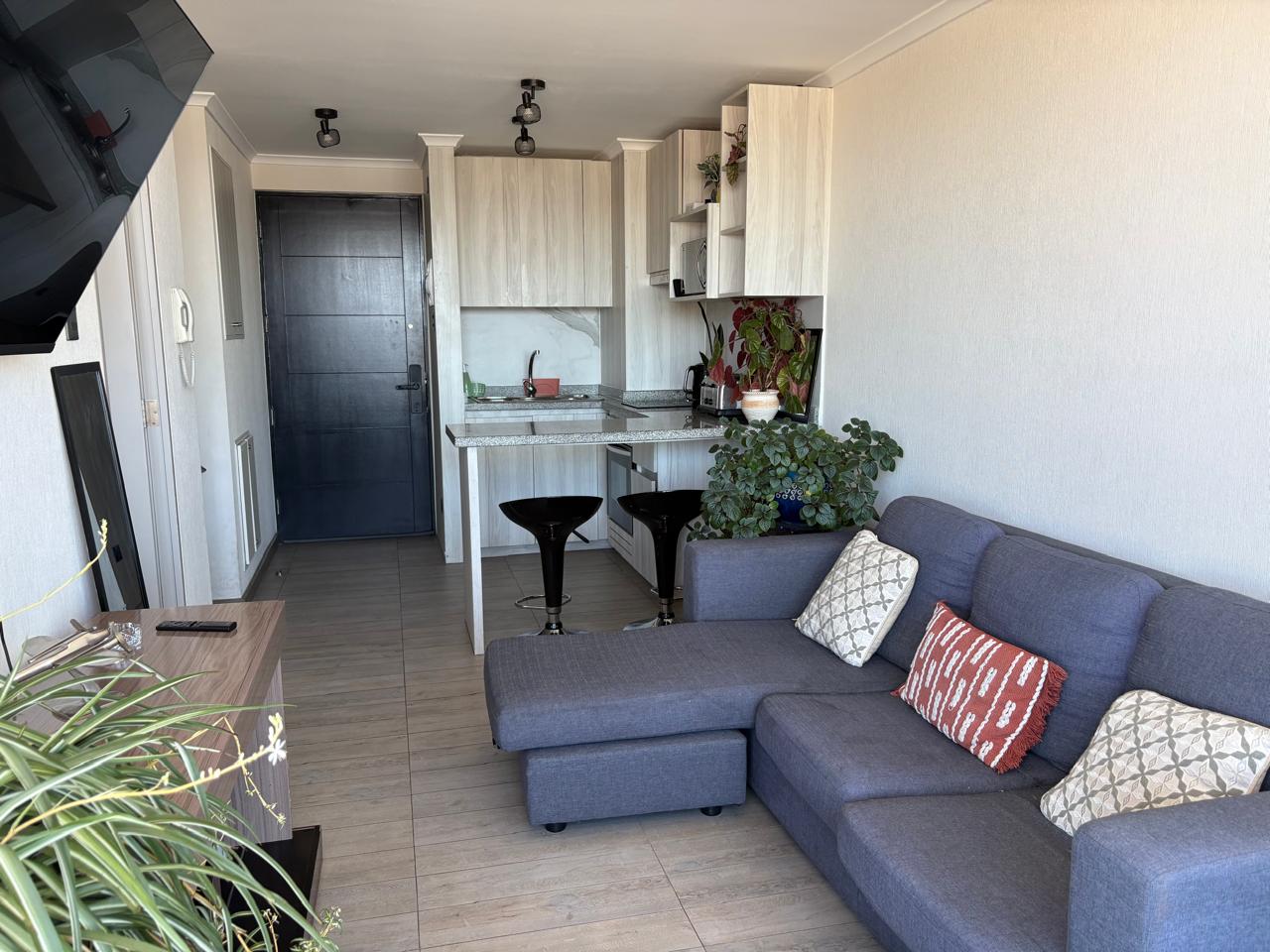 La propiedad cuenta con vista panorámica a la ciudad, orientación oriente que asegura excelente luz natural, y se encuentra en impecable estado. Dispone de terminaciones en porcelanato en recibos y dormitorio, además de ser full eléctrico (sin gas).