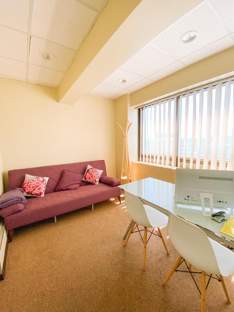 Cómoda recepción, gran planta libre y privado, baño y kitchenette.